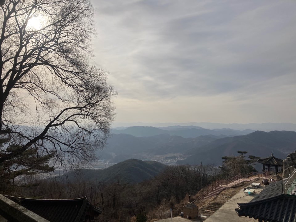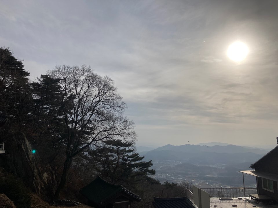 산림욕장에서 1시간 반정도 걷고 그대로 집에 가기 아쉬워 가까운 절을 찾았다. '가섭사'라는 곳이었는데, 이곳이 딱 전망대 역할을 한다. 음성에서 가장 높은 산 거의 꼭대기에 위치해 있다. 음성에 가면 꼭 올라가서 전체를 조망해보면 좋다. 차길이 꽤 잘 되어 있어서 올라가는데 무리가 없다.