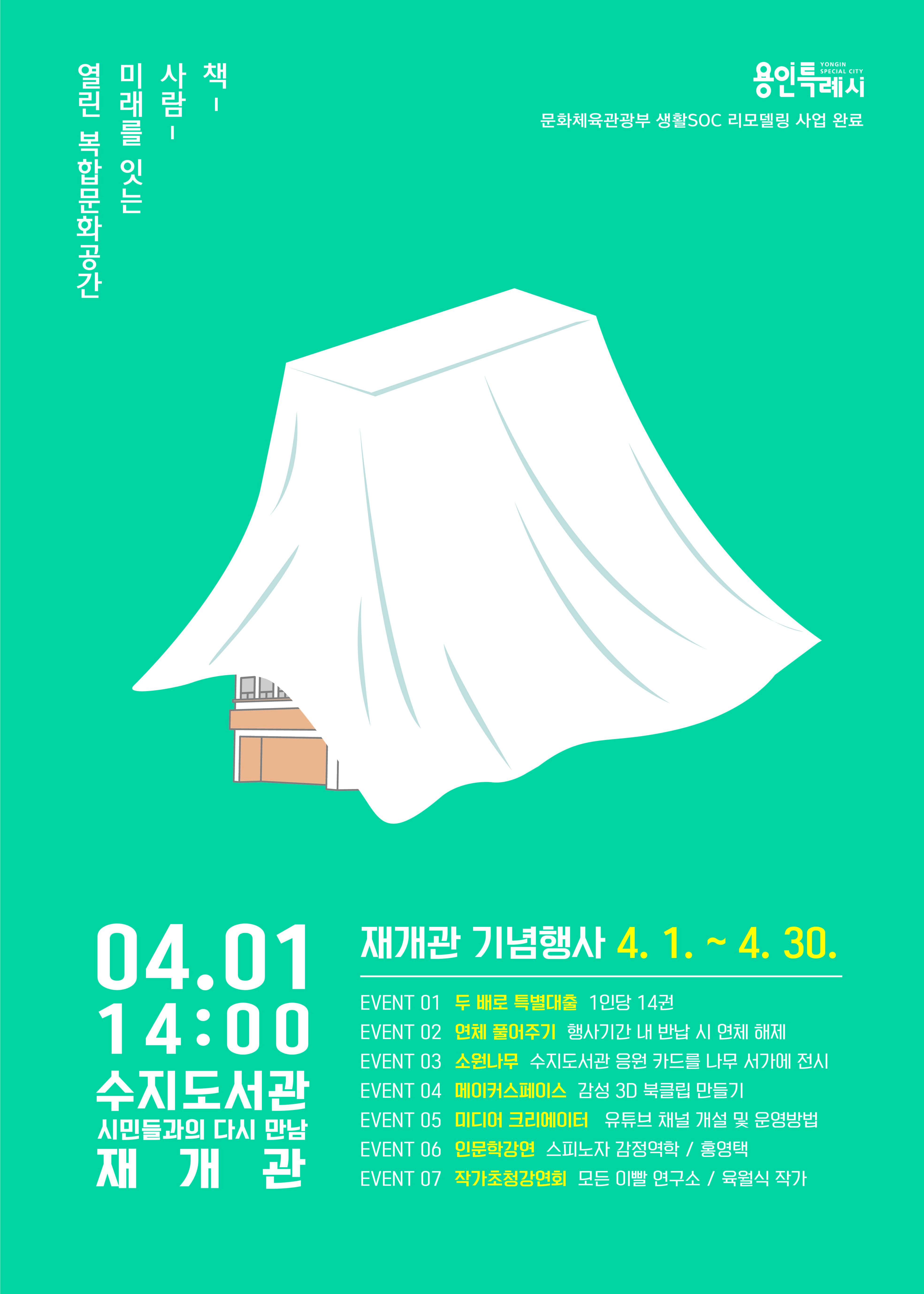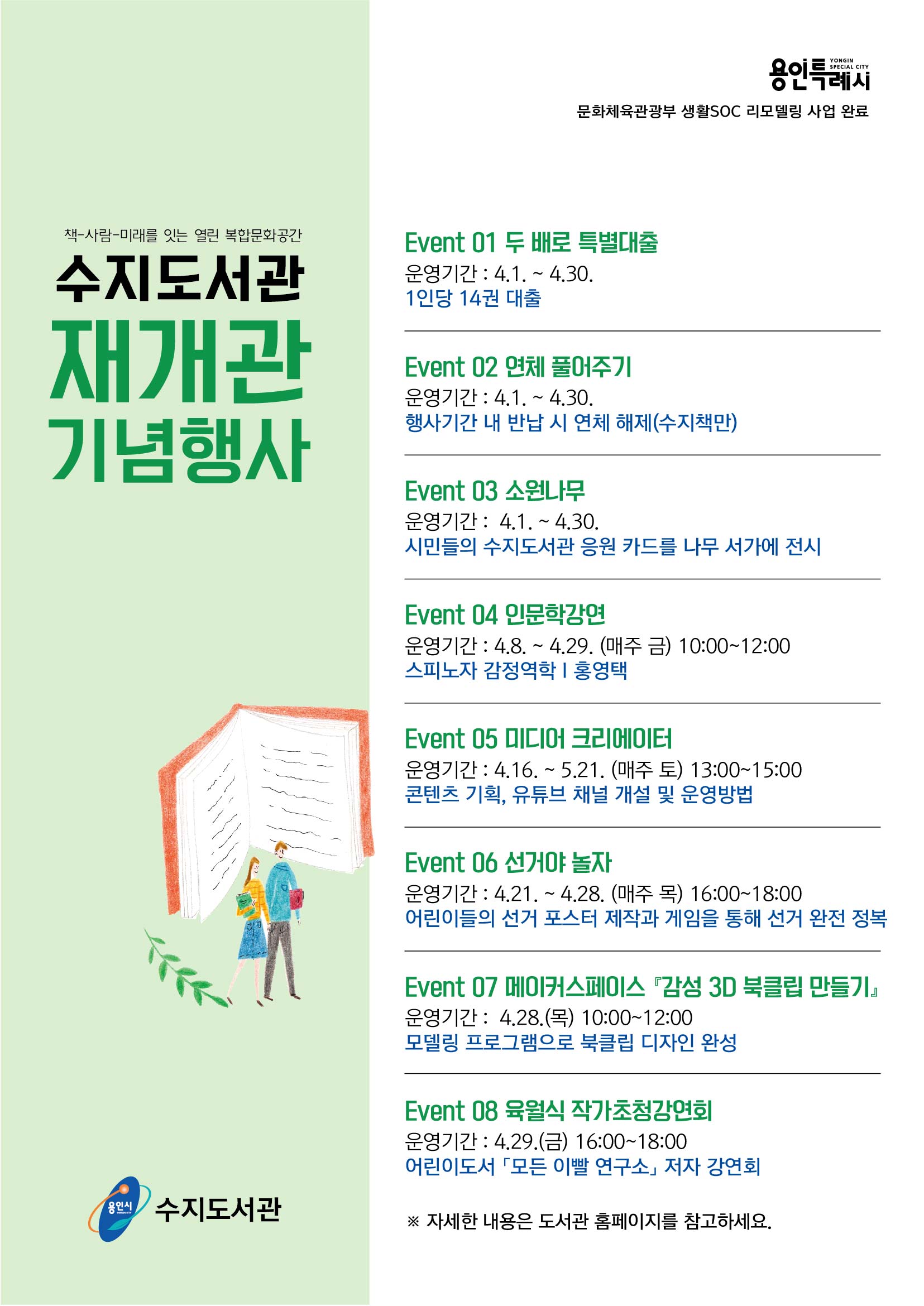 작년 8월부터 보수공사에 들어갔던 용인 수지도서관이 오는 4월 1일에 문을 엽니다. 도서관이 어떻게 바뀌었을지 궁금하네요. ^^